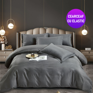 Lenjerie King Size Cu Elastic Damasc Finet 6 Piese Antracit – Confort Suprem Si Design Elegant