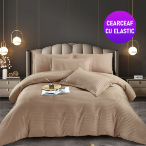 Lenjerie King Size Bej cu Elastic Damasc Finet 6 Piese – Confort și Eleganță în Dormitor