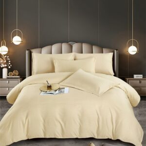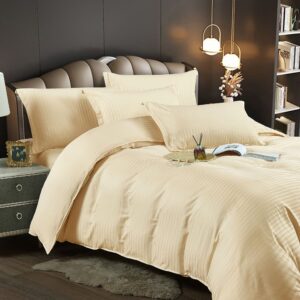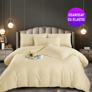 Lenjerie Single Damasc Finet 4 Piese Crem – Confort Suprem, Material Calitativ, Fără Calcare