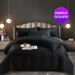 Lenjerie King Size Cu Elastic Damasc Finet 6 Piese Negru – Confort Si Eleganță În Dormitor