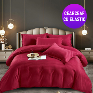 Lenjerie King Size Cu Elastic Damasc Finet 6 Piese Rosu – Confort Suprem Si Stil Elegant