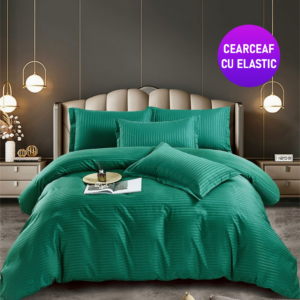 Lenjerie King Size Cu Elastic Damasc Finet 6 Piese Verde – Confort Suprem Si Design Elegant