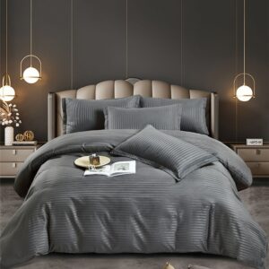 Lenjerie Single Damasc Finet 4 Piese Antracit – Confort Suprem și Elegant