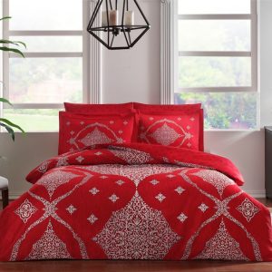 Lenjerie De Pat Aira Rosu TAC Bumbac Dublu Satinat Deluxe Antisifonare Ambalaj Cadou Elegant