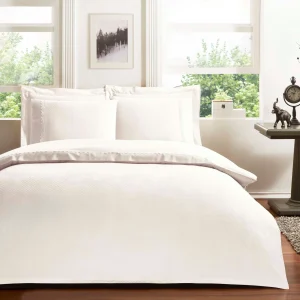 Lenjerie De Pat Place Alb TAC – Damasc Dublu Satinat Deluxe, 100% Bumbac Natural, Antisifonare, Design Modern, Cadou Elegant