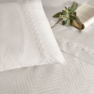 Lenjerie De Pat Sambre Ecru Cu Dantela TAC – Bumbac 100% Mercelizat, Jaquard, Ambalaj Cadou Deluxe