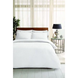 Lenjerie De Pat Basic Alb TAC Bumbac Satinat Deluxe Antisifonare Design Modern