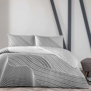 Lenjerie De Pat Basic Uni Antracit TAC Bumbac Ranforce Antisifonare Design Modern