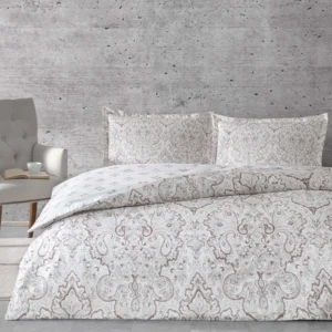 Lenjerie de Pat Brinley Ecru TAC Damasc Dublu Satinat Deluxe 100% Bumbac Mercelizat 300 TC transformă fiecare noapte într-o experiență de lux. Confortul superior și designul elegant fac din această lenjerie alegerea ideală pentru un dormitor rafinat. Nu rata ocazia de a-ți îmbunătăți somnul! Comandă acum!
