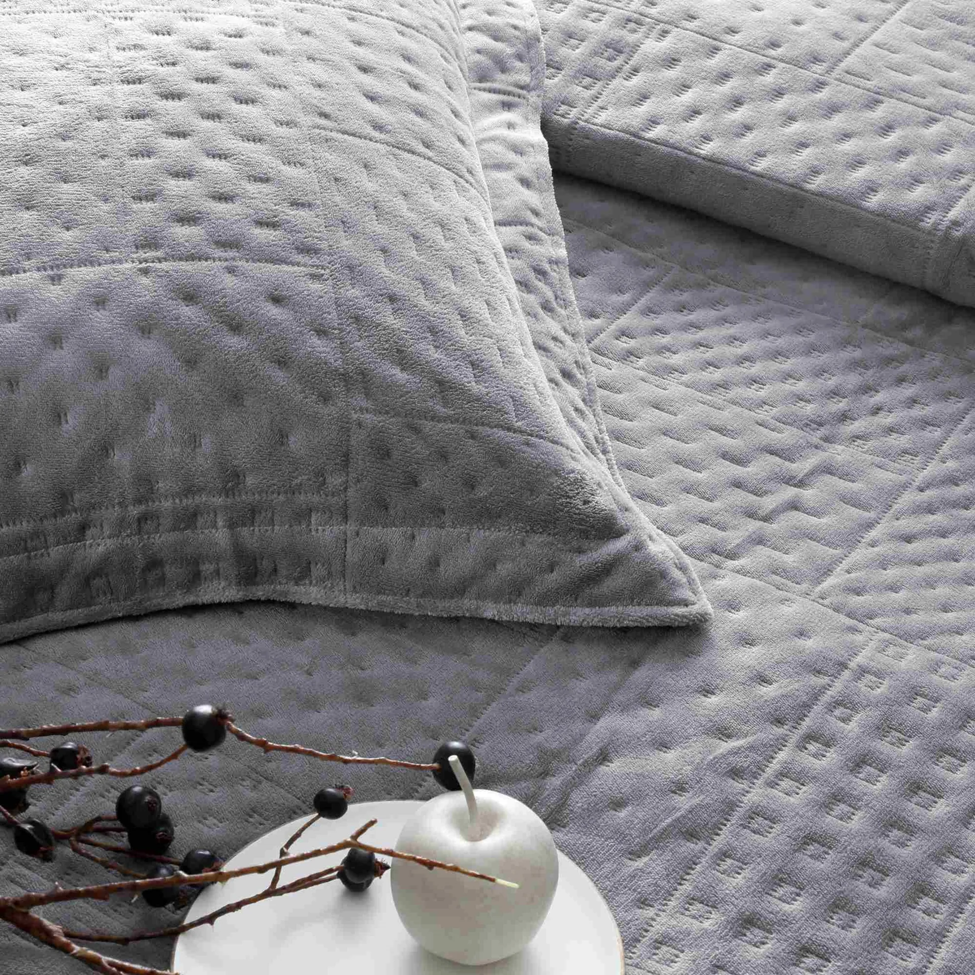 Cuvertură Pat Catifelată TAC Deluxe Gri 250x240cm pentru 2 Persoane cu Design Elegant și Material Modern