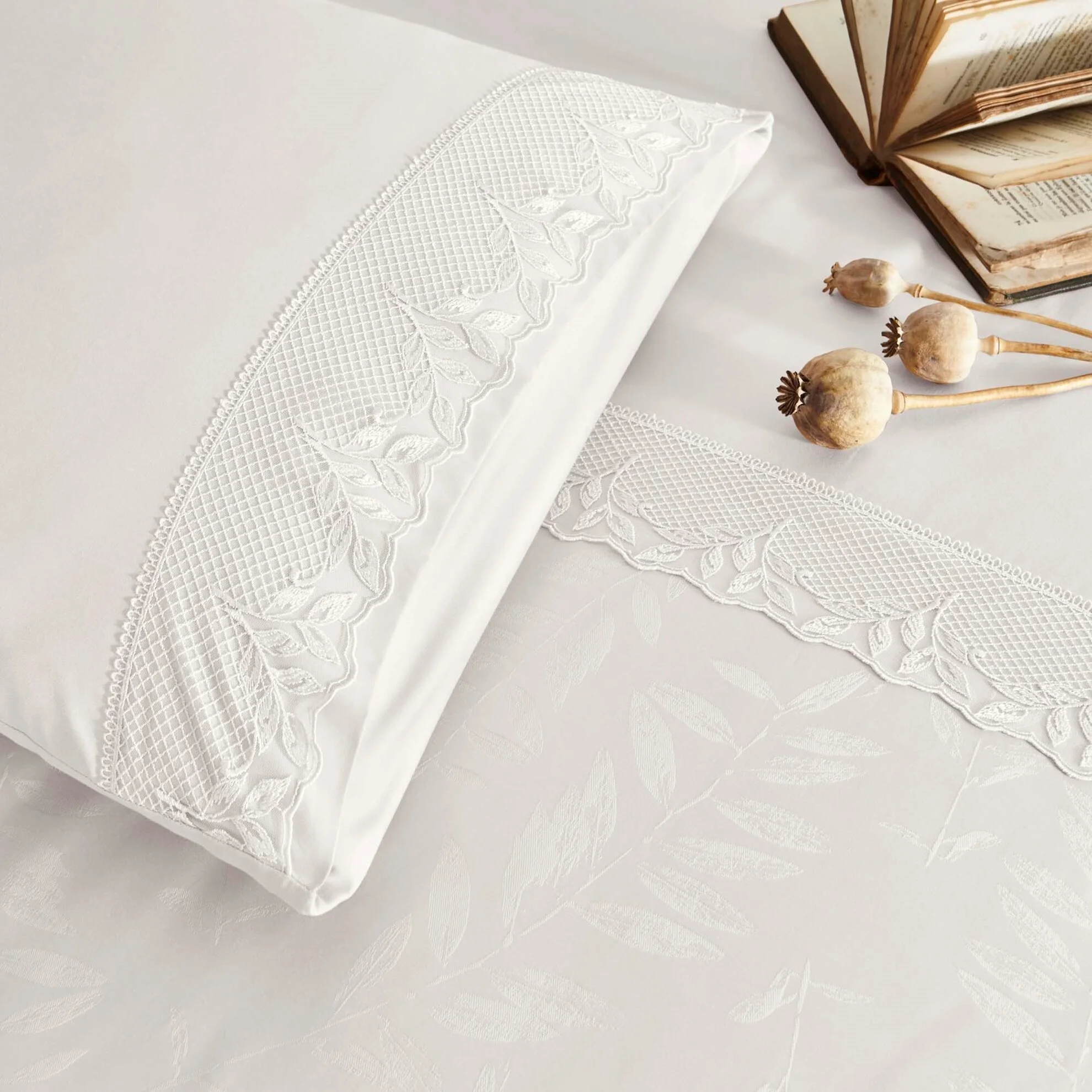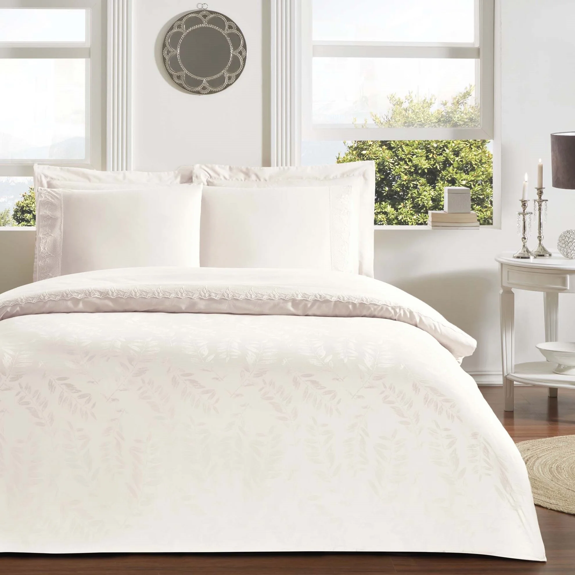 Alegând lenjeria de pat Clarette Ecru cu dantelă TAC, tu îți transformi dormitorul într-un spațiu de relaxare și eleganță. Iată câteva beneficii esențiale: