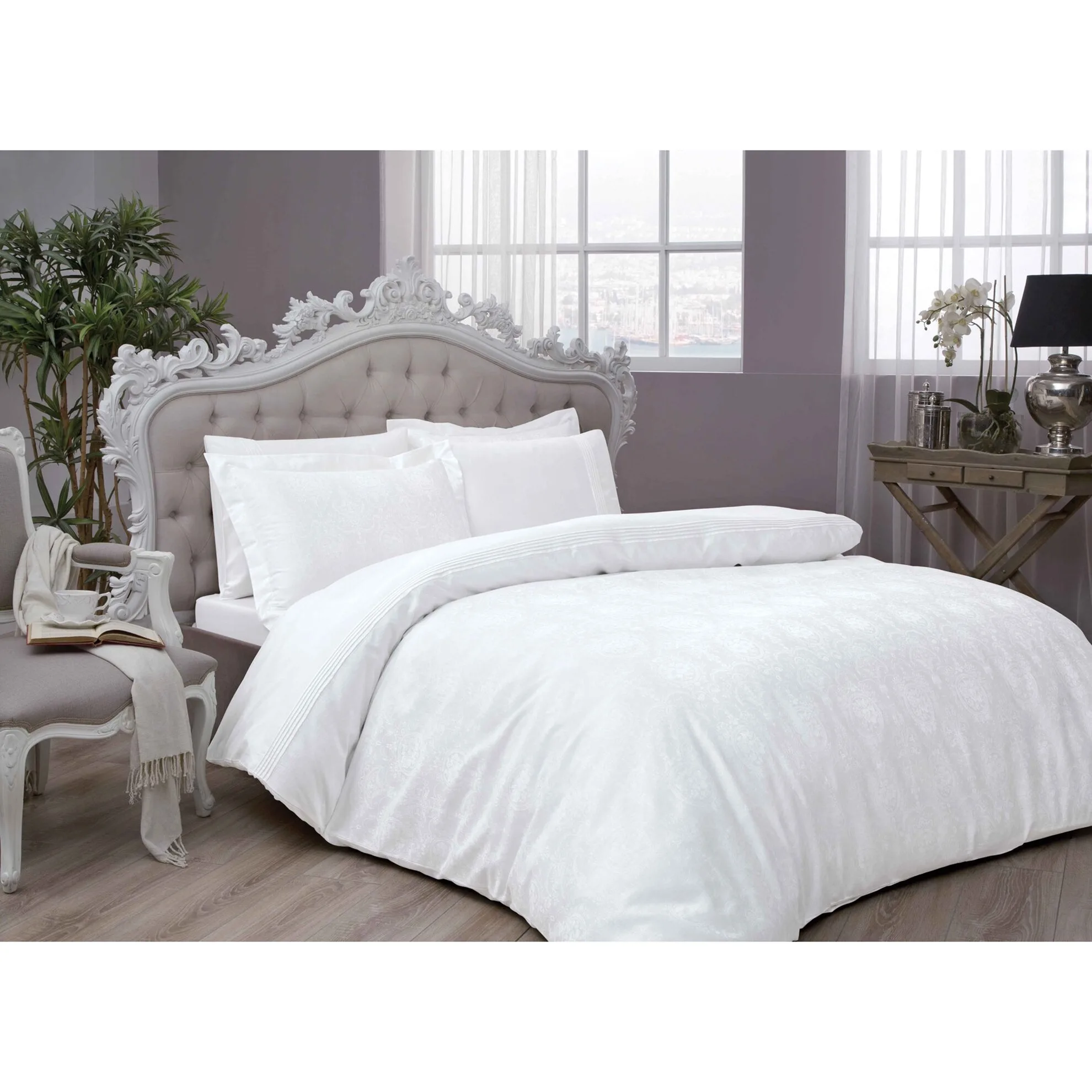 Lenjerie de Pat Diana Alb TAC Damasc Dublu Satinat DELUXE 100% Bumbac Mercelizat