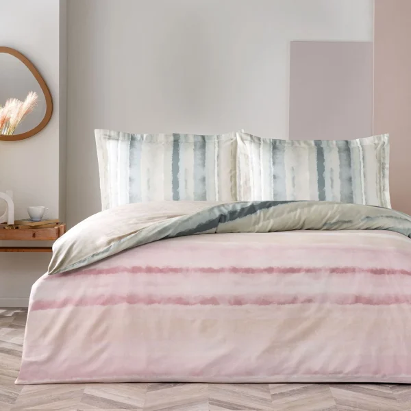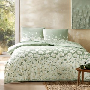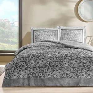 Lenjeria de pat este fabricata din 100% bumbac natural mercelizat / satinat. Aceasta este tratata antisifonare, are tesatura densa placuta la atingere cu un design modern.