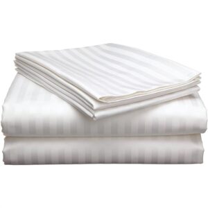 Cearceaf Pat Cu Elastic 160x200cm Din Bumbac Damasc, Design Elegant, Dunga 1cm, Ideal Pentru HORECA