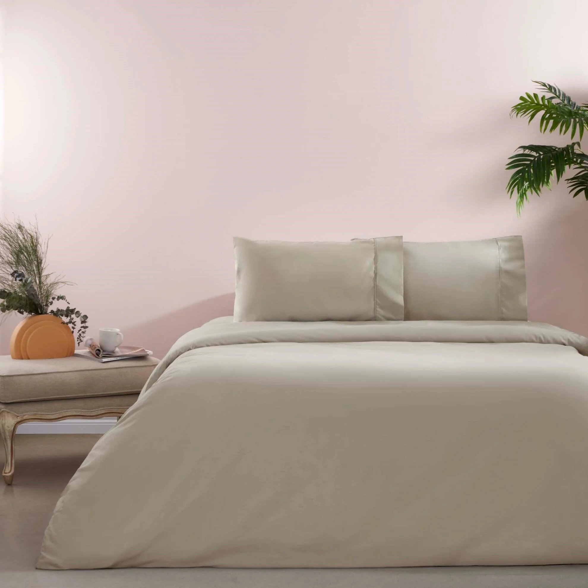 De ce să Alegi:Lenjerie Pat King Size Mako-Satin Basic Vizon TAC – Bumbac Satinat