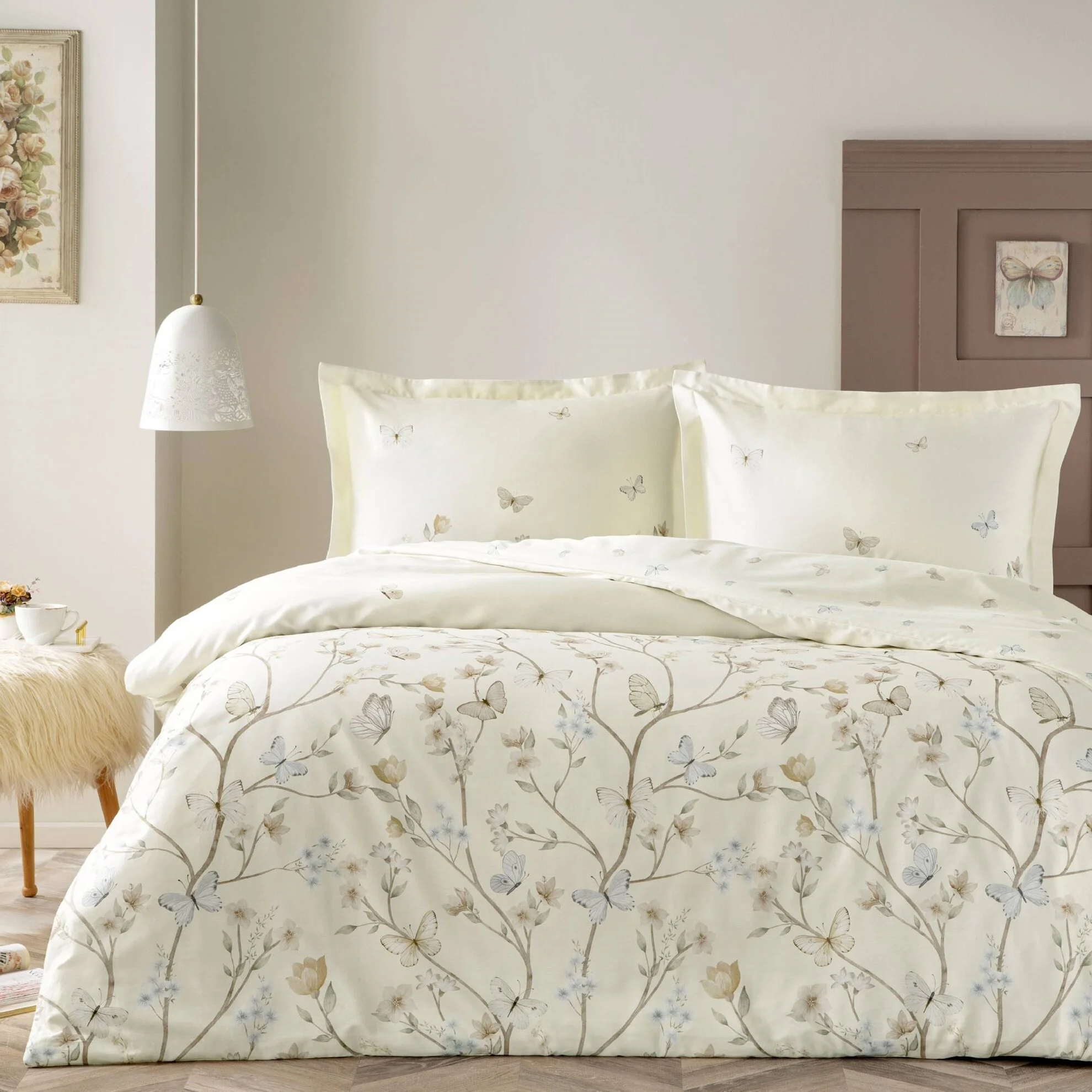 - Material de Înaltă Calitate: Lenjeria este fabricată din 100% bumbac natural mercelizat/satinat, ce asigură o textură moale și plăcută la atingere, perfectă pentru un somn odihnitor.