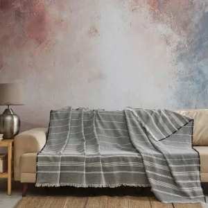 - Material Premium: Construită dintr-un amestec de 50% bumbac și 50% alte fibre, Patura Evana oferă o textură moale și plăcută la atingere, fiind ideală pentru toate tipurile de piele.