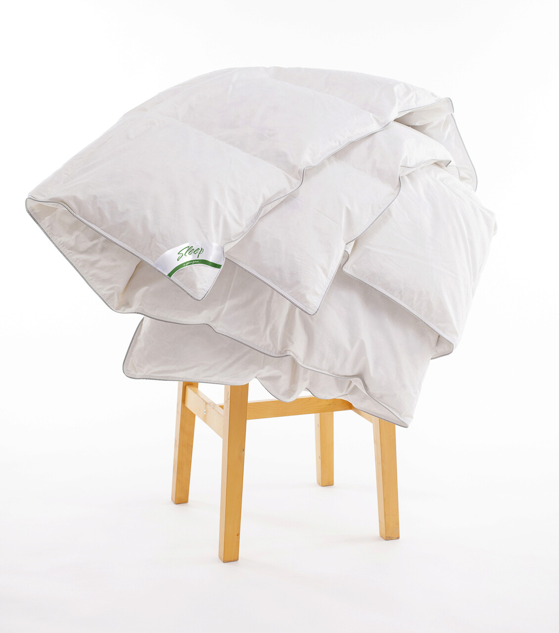 • Umplutură Naturală: Combină 10% puf de gâscă și 90% până de gâscă, oferind o elasticitate superioară și o durabilitate mai mare comparativ cu fibrele sintetice.