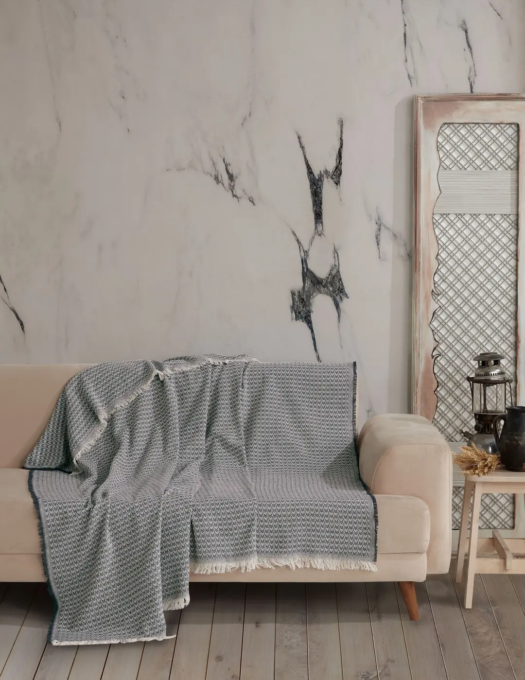 • Material de Înaltă Calitate: Pledul este fabricat dintr-un amestec de 85% bumbac și 15% poliester, asigurând o textură moale și plăcută la atingere, care este totodată rezistentă și durabilă. Fibrele de bumbac oferă o respirabilitate excelentă, menținându-te confortabil în orice sezon.