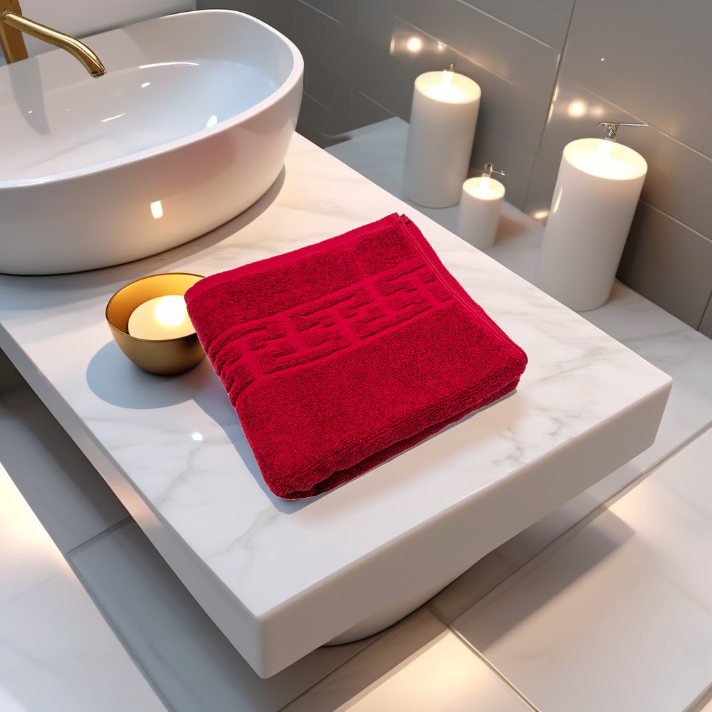 Descoperă prosopul luxury 50 x 90cm din bumbac de 650g/m²,rosu intens, cu design greek border. Moale, absorbant și durabil, ideal pentru uz hotelier și personal. Calitate premium garantată!