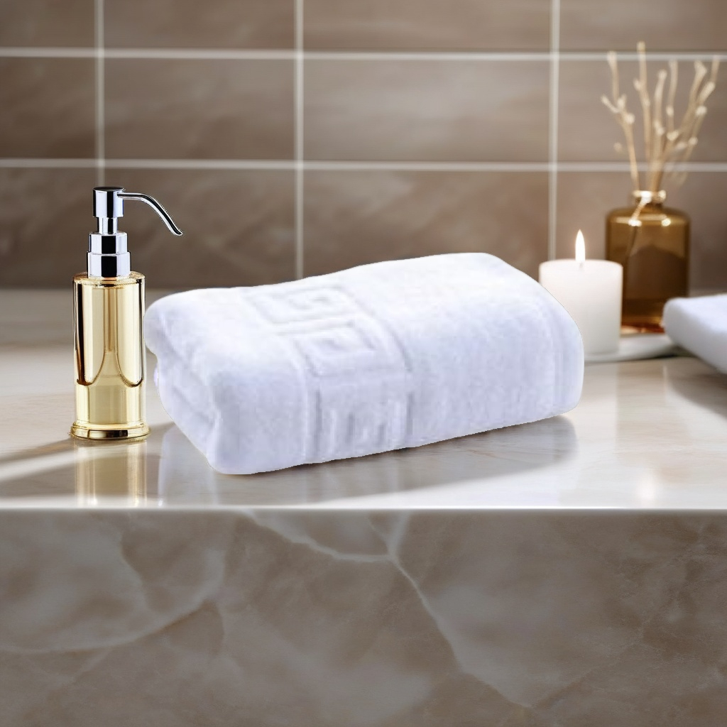 Prosopul luxury de 50x90cm este fabricat din 100% bumbac pakistanez, recunoscut la nivel mondial pentru finețea și capacitatea de absorbție. Cu o greutate de 620g/m², acest prosop oferă o senzație de lux și îmbunătățește experiența de utilizare. Este ideal atât pentru uz personal, cât și pentru utilizarea în hoteluri de lux, datorită aspectului său sofisticat și a performanțelor superioare.