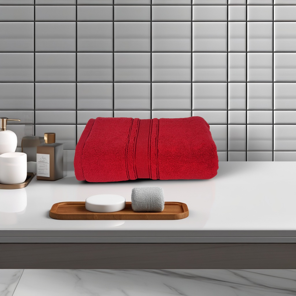 Prosop Ultra Pufos 50×90 cm – 100% Bumbac Pieptănat, Zero Twist, 600 g/mp – Roșu