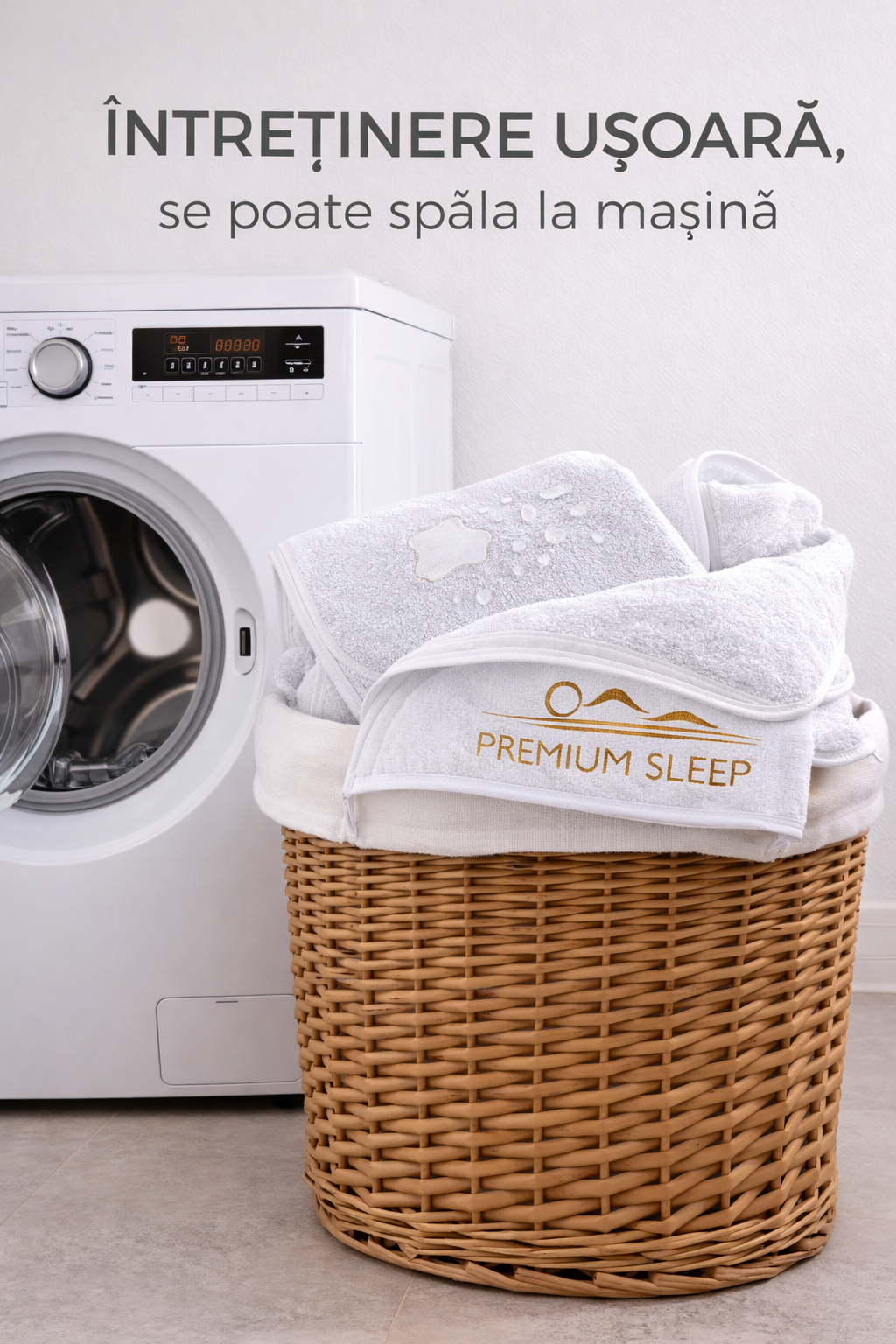 • Material: Bumbac Frotir – Oferă o textură moale și plăcută, care îmbunătățește confortul în timpul somnului.