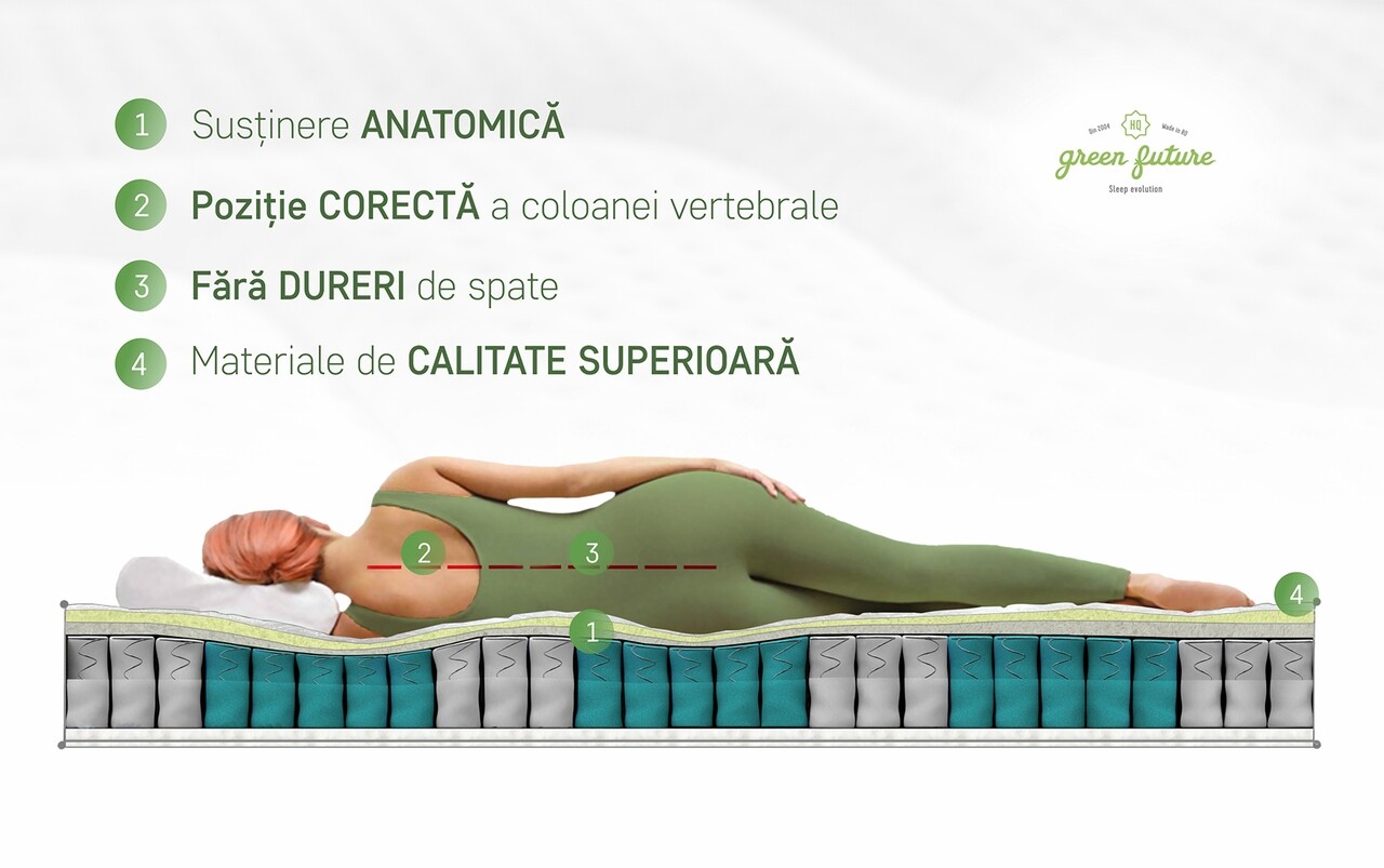 Impreuna cu specialisti din industria hoteliera de-a lungul timpului am dezvoltat salteaua Green Future Hotel Line Memory Pocket 7 Zone.