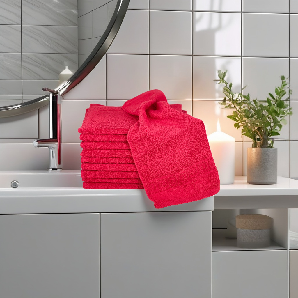 Set 10 Prosoape Hoteliere 30x50cm Bumbac Pakistanez 500 g/mp Greek Border Roșu