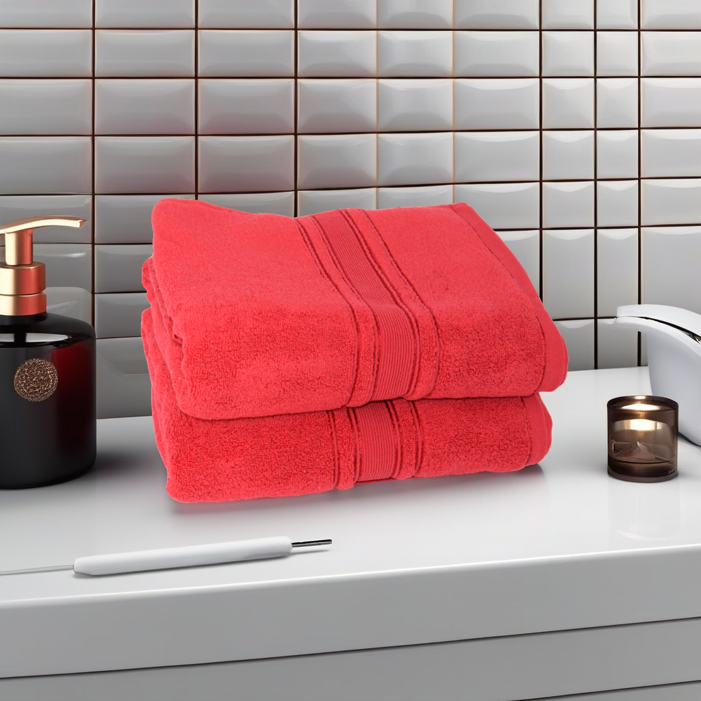 Set 2 Prosoape Ultra Pufoase 70×130 cm 600 g/mp Bumbac Zero Twist Roșu
