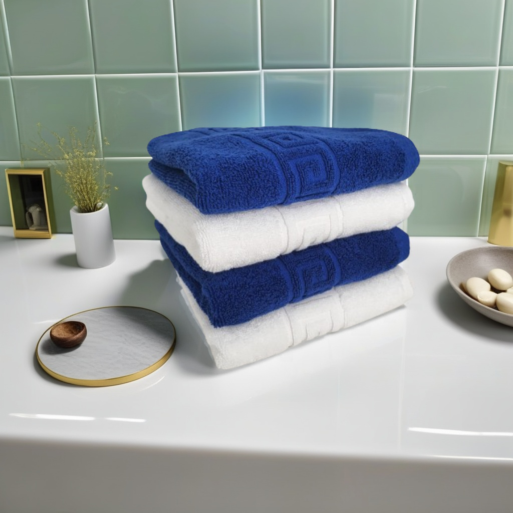 Set 4 Prosoape de Lux 50×90 cm – 100% Bumbac Pieptănat, 650 g/mp – Royal Blue & Alb 💙🤍