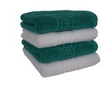 Set 4 Prosoape 50×90 cm – 100% Bumbac, 500 g/mp – Green Dk, Alb