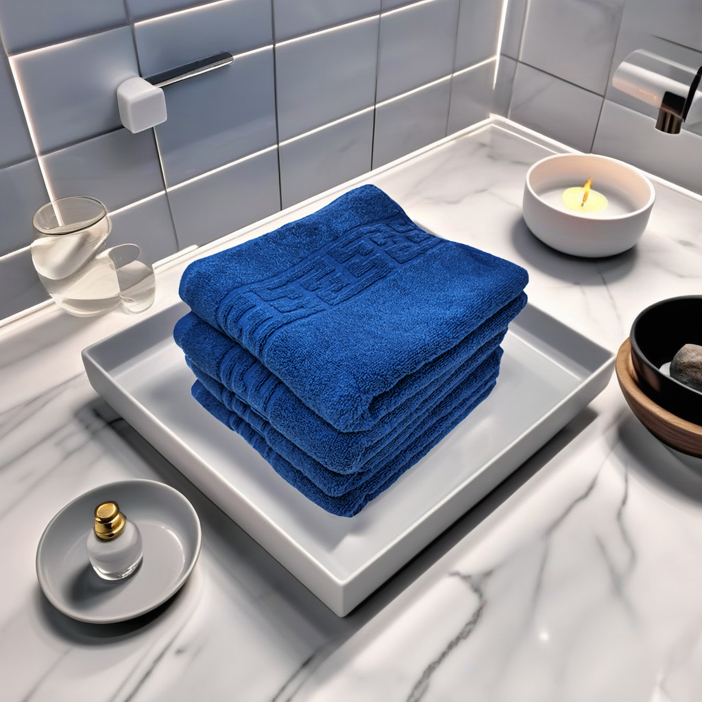 Prosop Luxury Bumbac 650g/m² 50x90cm Royal Blue Absorbant Design Greek Border