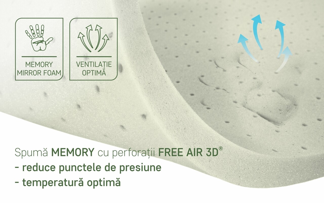 – spuma poliuretanica Memory Mirror Foam® cu perforatii Free Air H = 8 cm